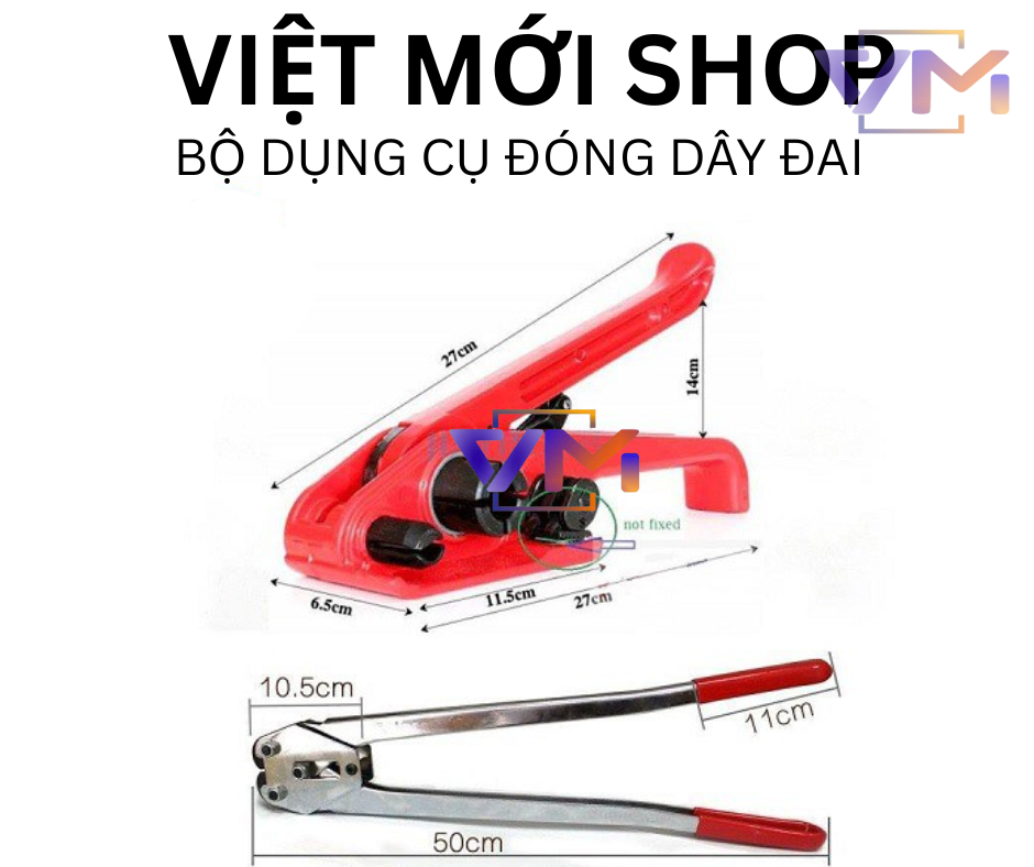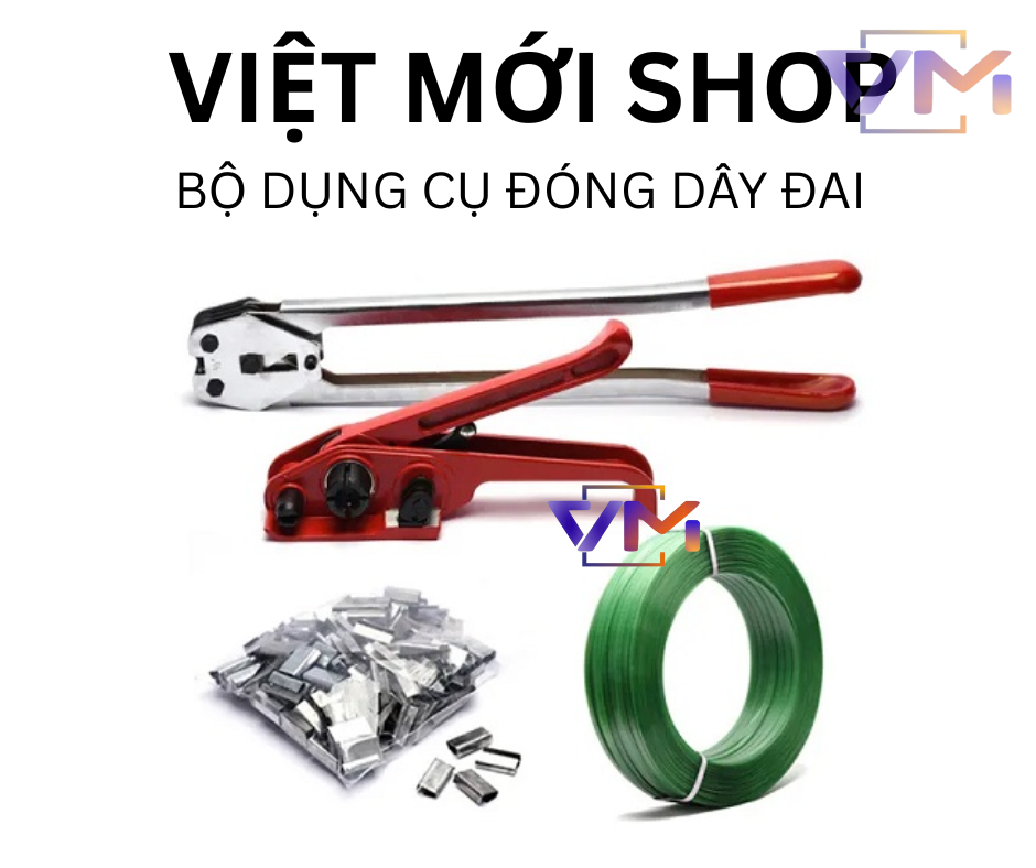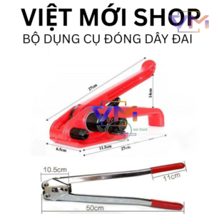 Bộ dụng cụ đóng dây đai nhựa cầm tay là một dụng cụ hỗ trợ đóng dây đai nhựa một cách nhanh chóng và dễ dàng. Bộ dụng cụ này thường bao gồm một kìm kẹp bọ và một dụng cụ siết dây đai.