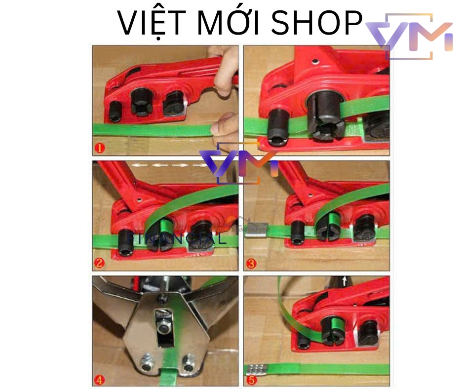 Để sử dụng bộ dụng cụ đóng dây đai nhựa cầm tay, bạn thực hiện theo 6 bước sau: