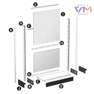 Được chế tạo từ kim loại cao cấp, kệ gondola này đảm bảo độ bền và khả năng chịu tải lên đến 1600 lbs (~725 kg), thích hợp cho nhu cầu trưng bày hàng hóa nặng.