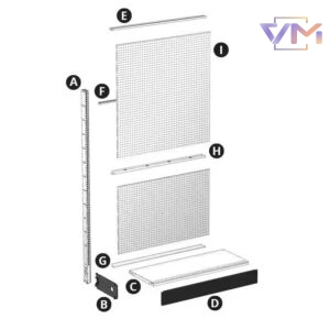 Kệ Treo Tường Gondola Kiểu Mỹ, 15 Kệ (Rộng 12FT x Cao 84 x Sâu 19) Dành Cho Cửa Hàng Tiện Lợi Hoặc Siêu Thị