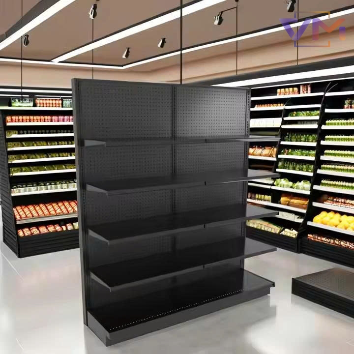 Kệ Trưng Bày Gondola Đơn Mặt Pegboard Màu Đen – Hạng Nặng, Dùng Cho Siêu Thị & Cửa Hàng – Sản Xuất Từ Kim Loại Cao Cấp